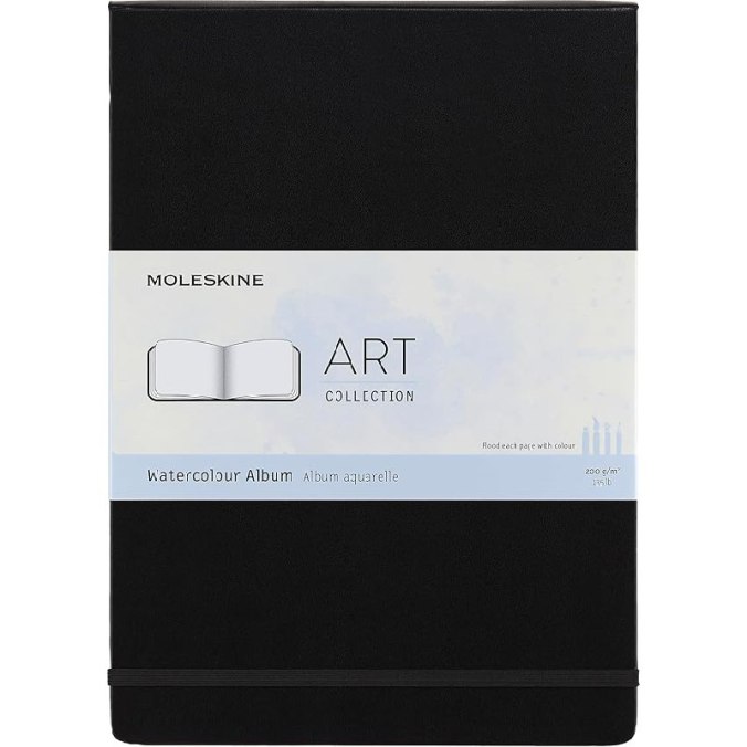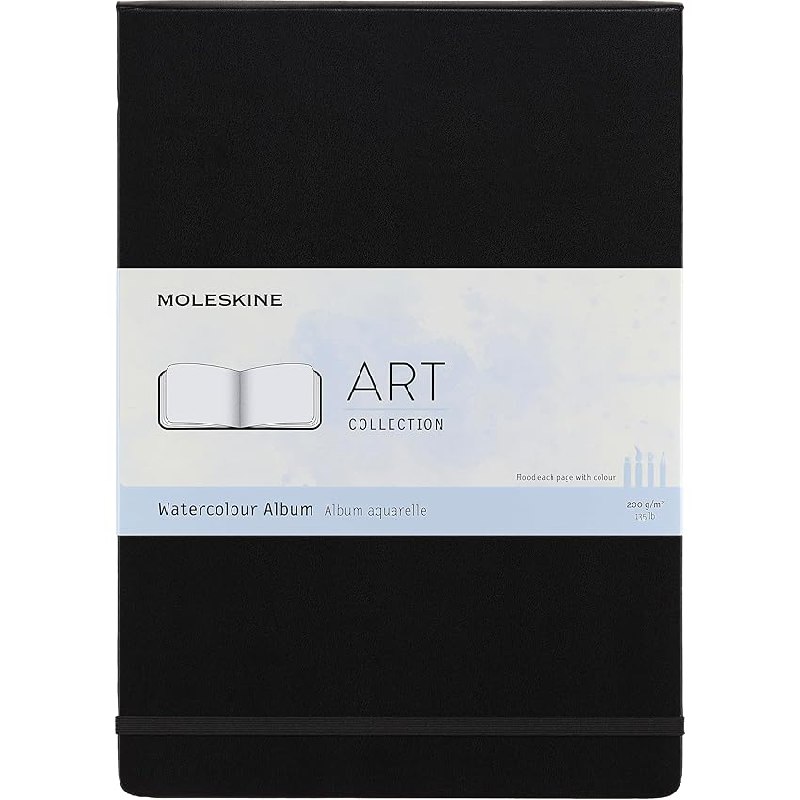 Moleskine Art Watercolour Album e Notebook Blocco da Disegno Chiusura Elastica, Carta Adatta a Acquerelli e Matite Acquerellabili, Nero, A4 21 x 29.7 cm, 60 Pagine