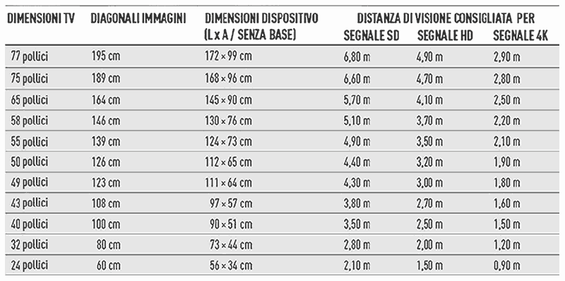 - UHD 4K: diagonale schermo x 1,5 = distanza di visione consigliata