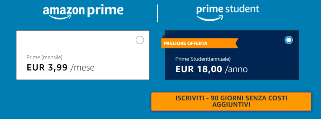 Dopo i primi 90 giorni, l’abbonamento a Prime per gli studenti universitari costa solo 18 € all’anno (50 % di sconto su Prime).